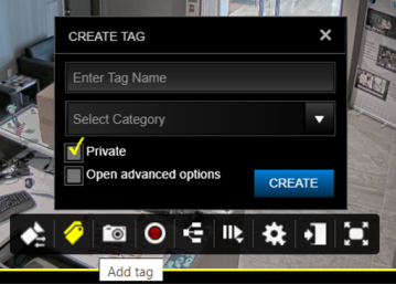 Add Tag | Displays the Create Simple Tag pop-up for that camera to create a Tag, or launch the full Create Tag screen for creating an advanced Tag for that camera’s View or Video. |